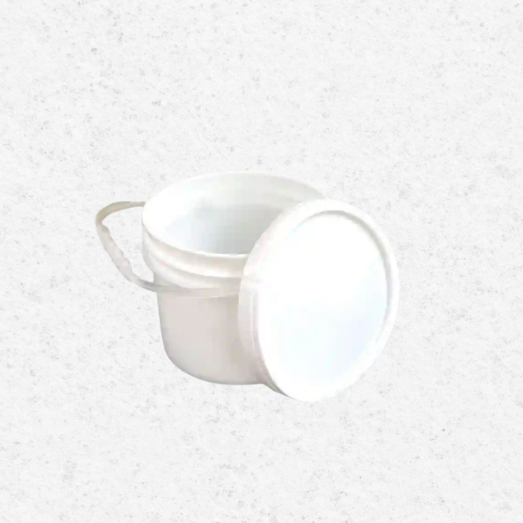 Tapa con precinto de seguridad y asa flexible para fácil manipulación.