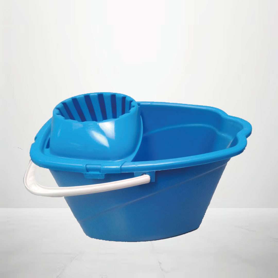 Balde ultraresistente con escurridor y agarradera que facilita la tarea del hogar.